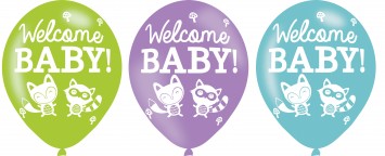 Lot de 6 ballons "nacré" imprimés motifs et inscription blanche de la collection Woodland Welcome.
